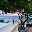 Sea-view terrace with dining table and loungers