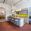 Our exclusive, open-plan villa showcases hand-crafted wooden beams and offers premium amenities, including a private gym, yoga lounge, sauna, cinema room, Wi-Fi, air conditioning. An electric car charging station is conveniently located near Castello di San Polo in Rosso.